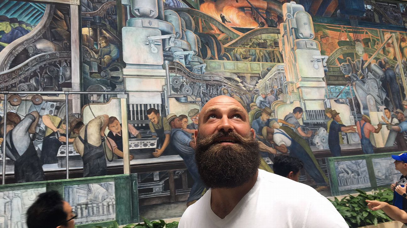 The Detroit Lions tight end is fascinated. He’s in the middle of explaining life as a nomad in the NFL when he’s momentarily speechless, drawn into the Detroit Industry murals created by Diego Rivera in the 1930s. The artist in him begins to come out.