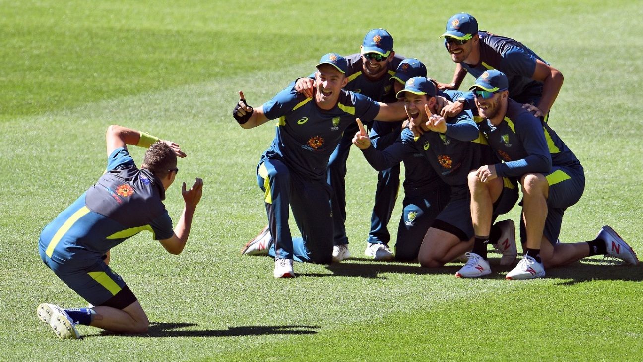 Australia 1 Aaron Finch, 2 Marcus Harris, 3 Usman Khawaja, 4 Shaun Marsh, 5 Travis Head, 6 Mitchell Marsh, 7 Tim Paine (capt & wk), 8 Pat Cummins, 9 Mitchell Starc, 10 Nathan Lyon, 11 Josh Hazlewood
