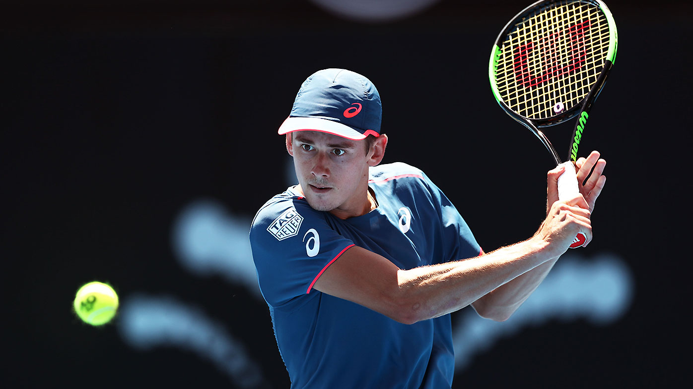 In a match suspended on Tuesday night after just one game, de Minaur was relieved after returning to Ken Rosewall Arena 14 hours later to carve out a hard-earned 6-4 7-6 (7-4) victory over towering American qualifier Reilly Opelka.