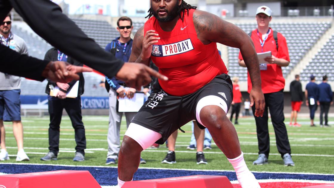 - Arizona’s other possible draftee, defensive tackle PJ Johnson, looked uncomfortable at times during drills. A scout said afterward that Johnson likely would land a job, regardless of how he looked, because his size is so rare. He measured at 6-3