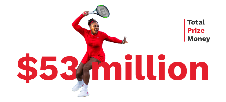 $18.1 million: Earnings for Serena Williams between June 2017 and June 2018, with only $62,000 from prize money due to a 14-month layoff to have her first child. Williams earns twice as much from endorsements as any other female athlete.